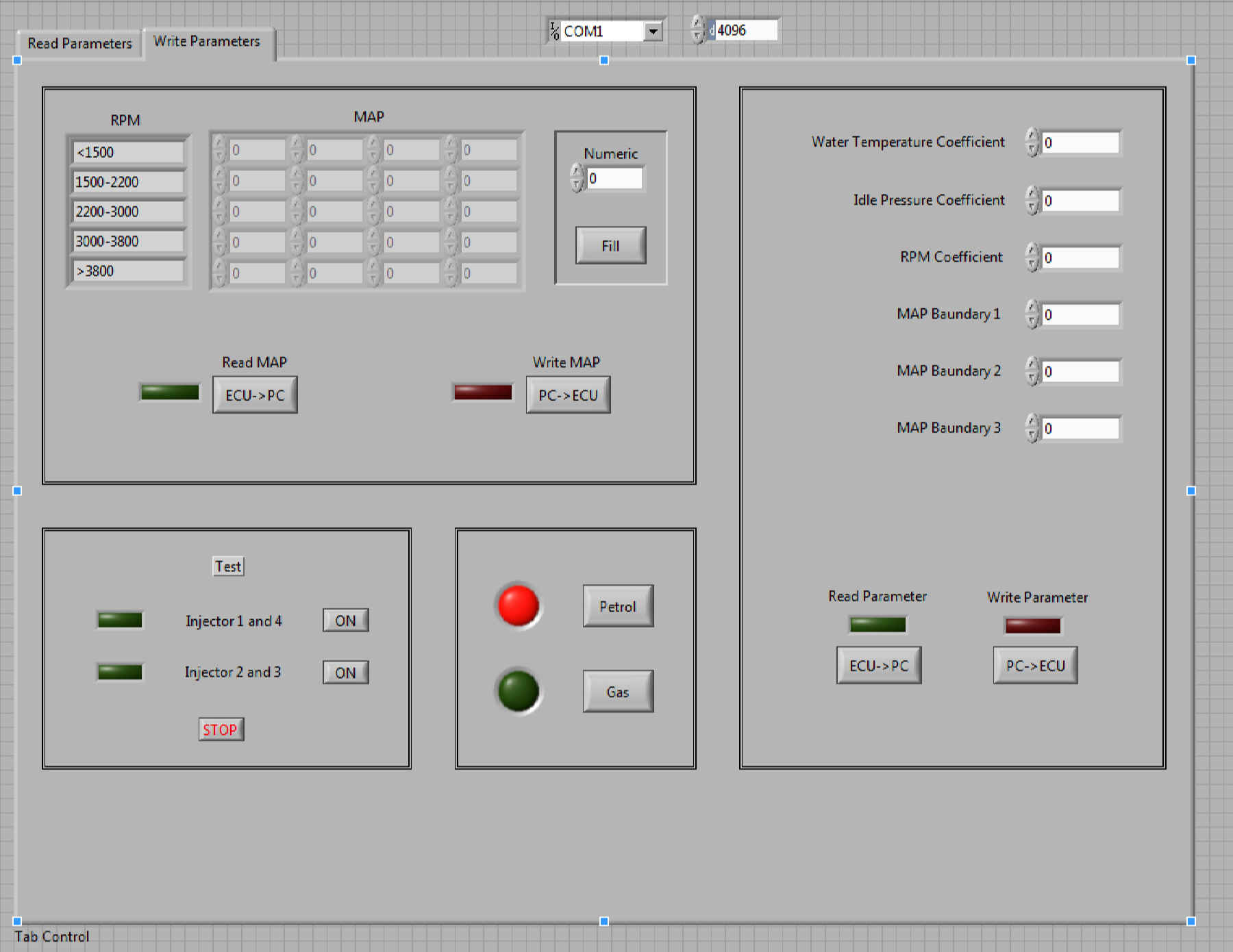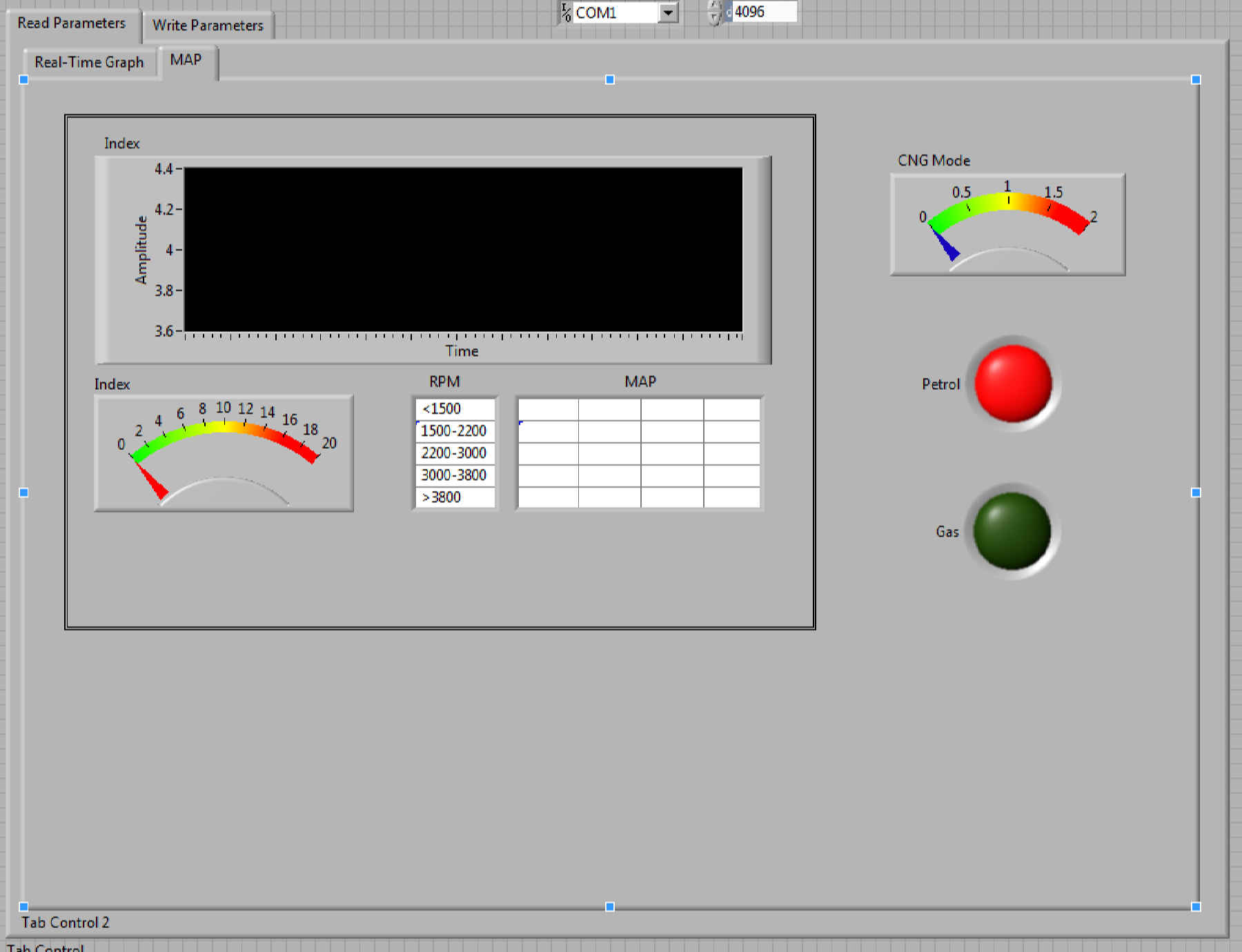 Connect to Hardware via RS232 Display parameters: Oxygen sensor CNG pressure Injection pulse width RPM CNG level sensor Manifold air Pressure Water temperature OS: Windows x86 , x64